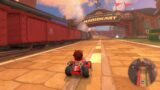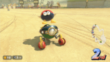 【P186】どんぐりツリーハウスから南方向へやや離れて、川に挟まれた湖の上を東西に通る道路の東端で、双眼鏡や青いダッシュ板の近く。ドリフトのミニターボなどで加速しつつ、制限時間内に青コインを8枚集める。