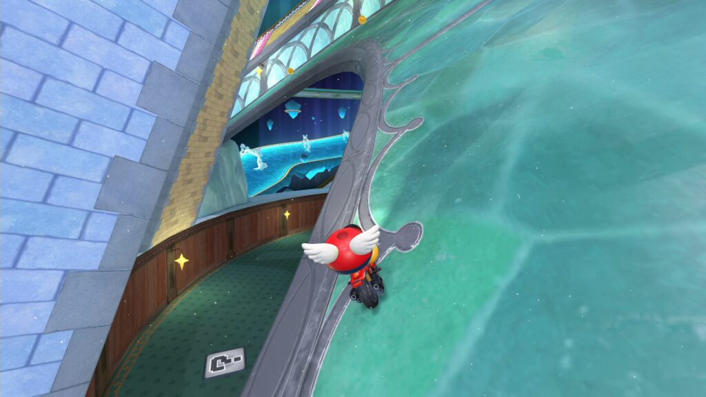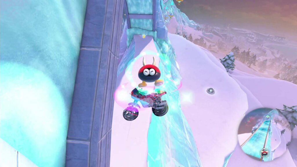ロゼッタてんもんだいから南東側へ出て、アイスビルディングへ向かう道中。コースは短いが狭く、ウォールラン2回が必須。難易度は高め。