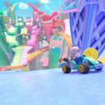 ピーチビーチ南東側カーブ。落ちているキノコに触れて加速しつつ、制限時間内にゴールを目指す。難易度はやや低め。