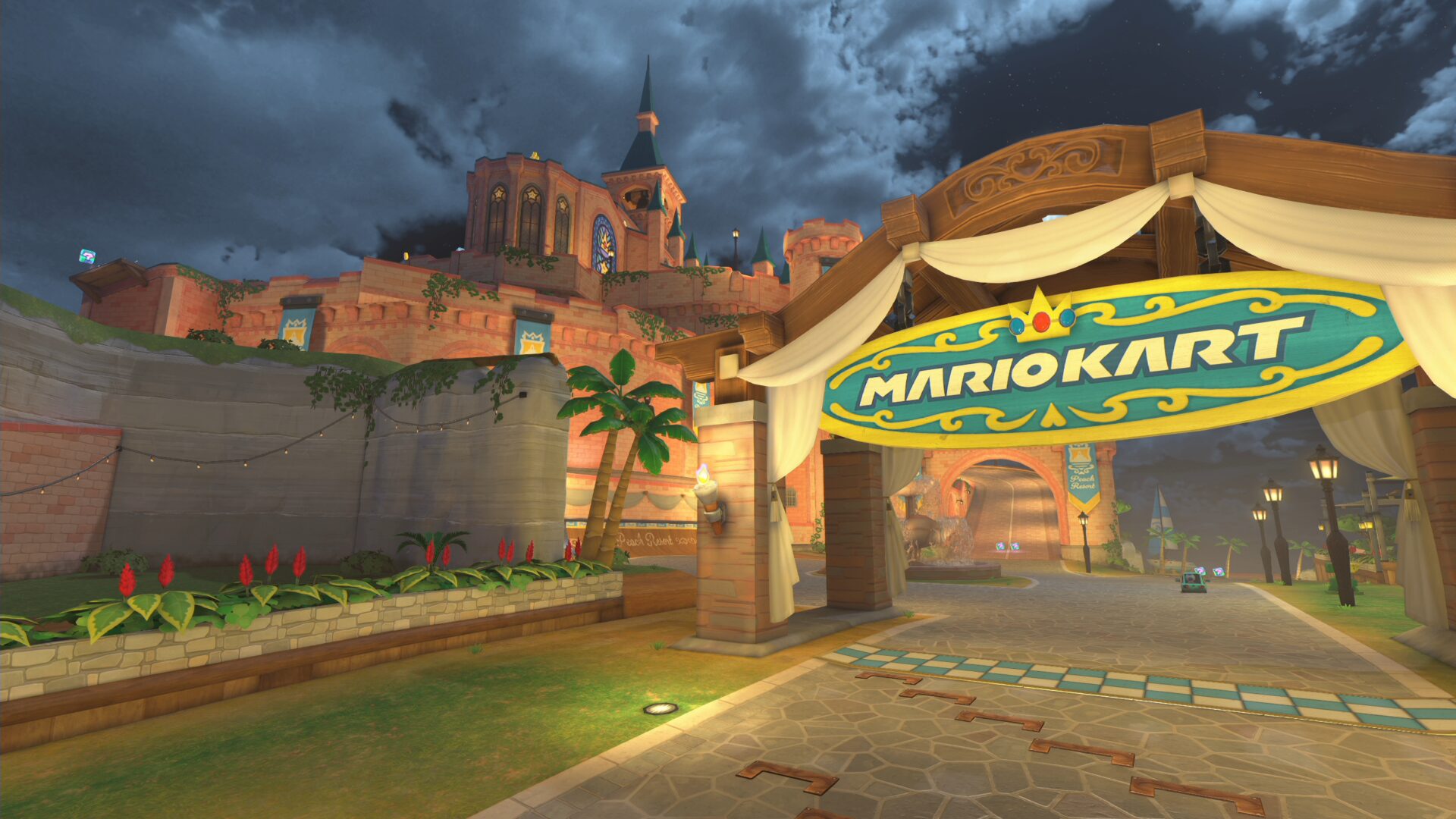 ピーチビーチ南東側カーブ。落ちているキノコに触れて加速しつつ、制限時間内にゴールを目指す。難易度はやや低め。