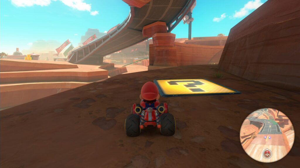 ⑤マリオブラザーズサーキット北側の橋の下にある高台。コースから飛び降りるか、コースの下付近を通っている道路からコースの下に入り込む。