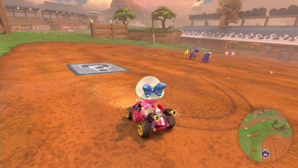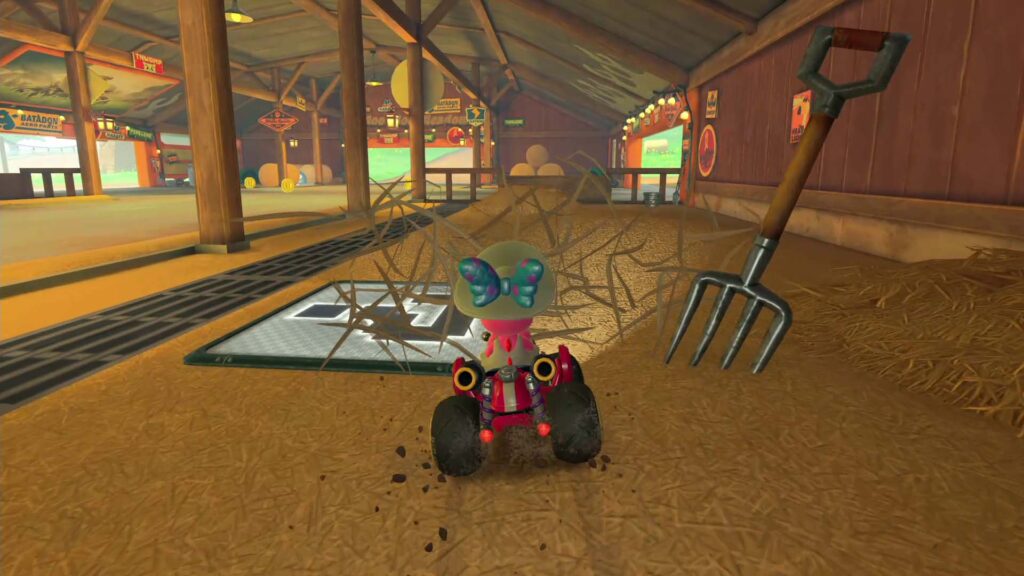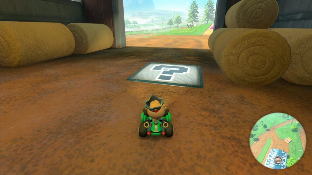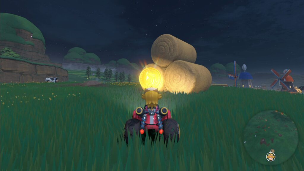 【P207】モーモーカントリーのスタート地点から北方向(ワープ直後からだと左方向)すぐにある牛舎と、そこから北方向すぐにあるヨッシーズのキッチンカーの間。牛をよけつつ、制限時間内にゴールを目指す。難易度はやや低め。
