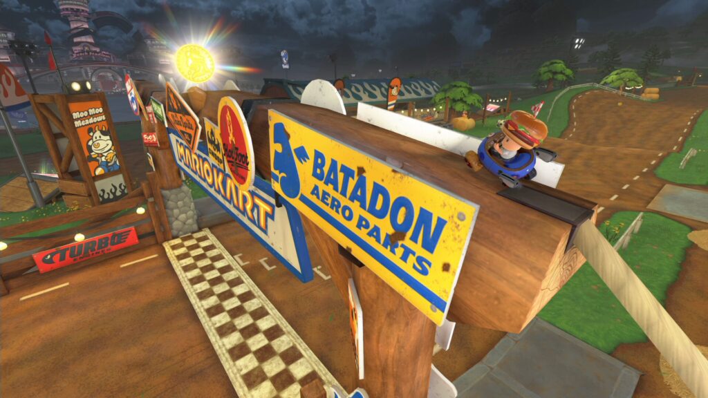 【M111】モーモーカントリーのスタート地点からゴールゲートを抜けた先すぐにある高台の看板の上。牛がバイクに乗った巨大モニュメントのある牛舎の屋根上の東側(ハテナパネルがある)から電線(たくさんの電球がぶら下がっている)へジャンプしてレールスライドして、最後にジャンプすれば取れる。牛舎の屋根上へは、さらに北側の高台からコインを目安にしてレールスライドやジャンプ、あるいは北西側の青いダッシュ板を踏んでグライドすれば来られる。