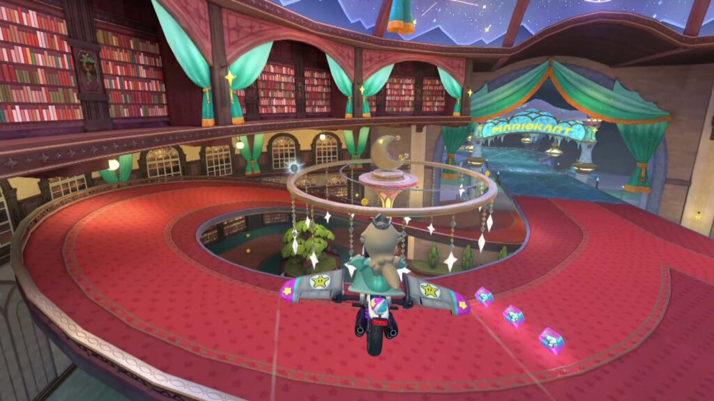 ・ロゼッタてんもんだいのコース途中のカーブから建物内(図書館の上)に飛び降りた先で、エリア中央部の輪の上。輪には加速をつけてからジャンプすれば飛び乗ることができる。コインを取った後、元の床上に戻ってくることもできる。