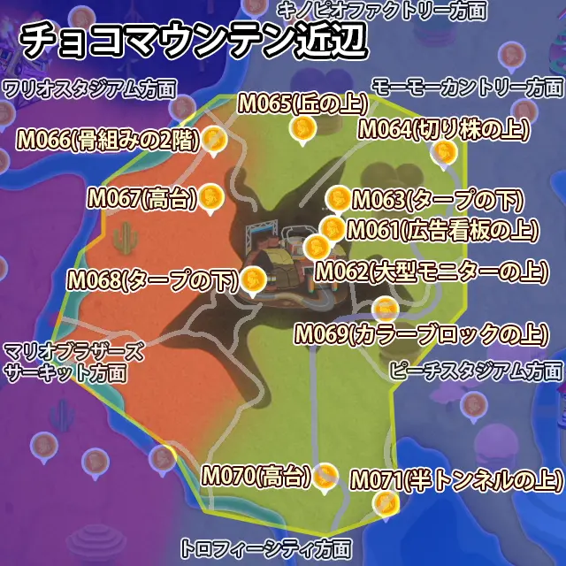 このページではピーチメダルの場所に関するネタバレがあります。自力で探すためのヒントだけ知りたい人は以下のページをご覧ください。