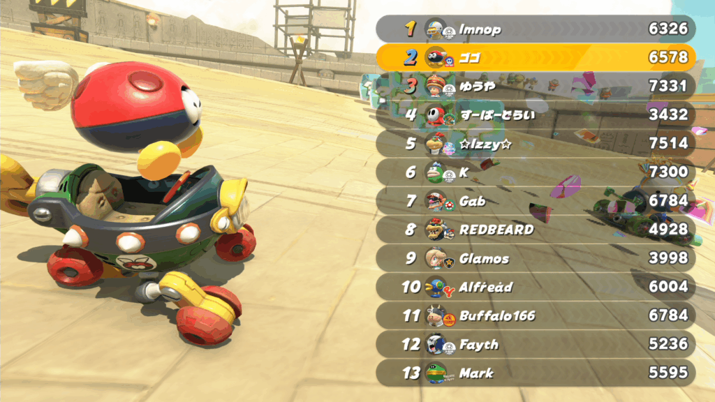 マリオカート ワールドのネット対戦レース1位が遠い ネット対戦 X Facebook はてブ LINE コピー 2025.06.152025.06.28 レート6000超までネット対戦のレースやって最高順位を更新(2位)。運が少し良ければいけるんじゃないかと思ってた1位が遠すぎる…。コースが分からなくてロスする場所が多いのでしばらくはミスしながら覚えていくしかないな。