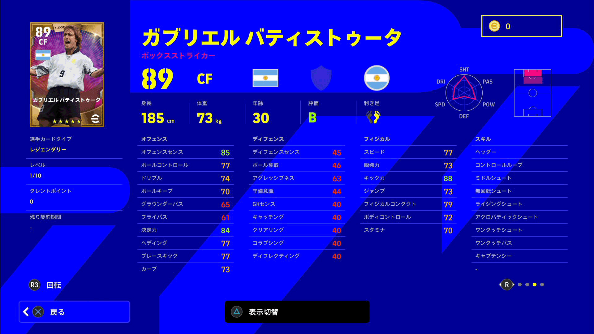 ガブルエル バティストゥータはCFで、プレースタイルはボックスストライカーです。