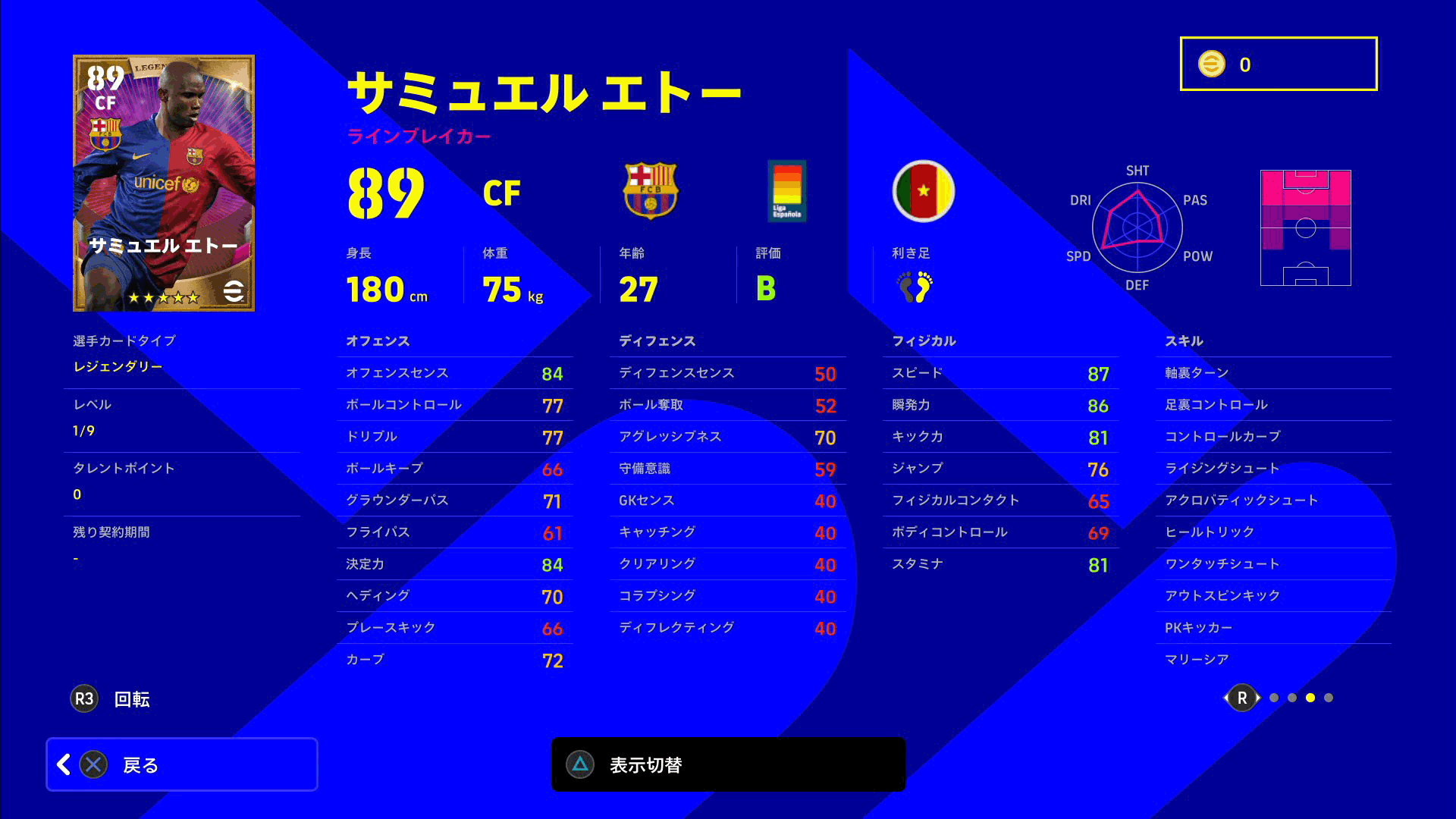 サミュエル エトーはCFで、プレースタイルはラインブレイカーです。