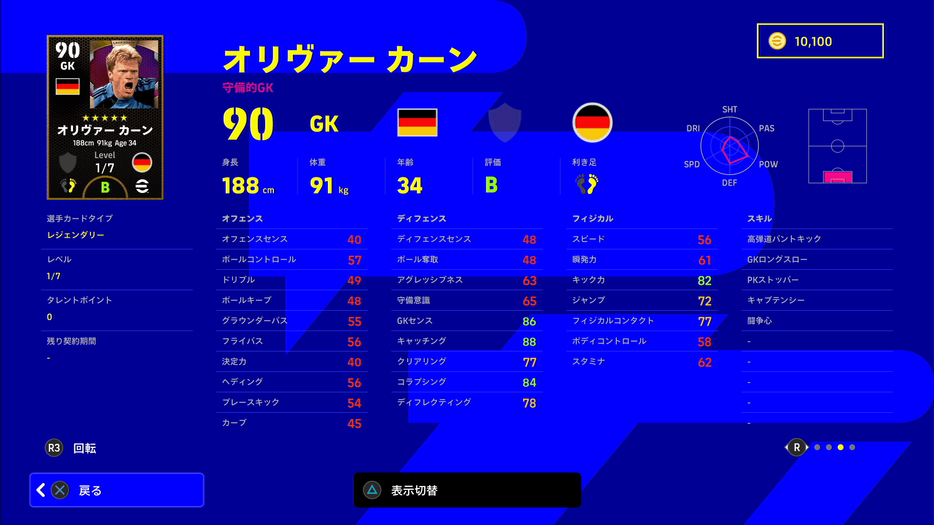 総合的には申し分なく、エピック・レジェンダリーのGK選手を持っていない人にオススメです。