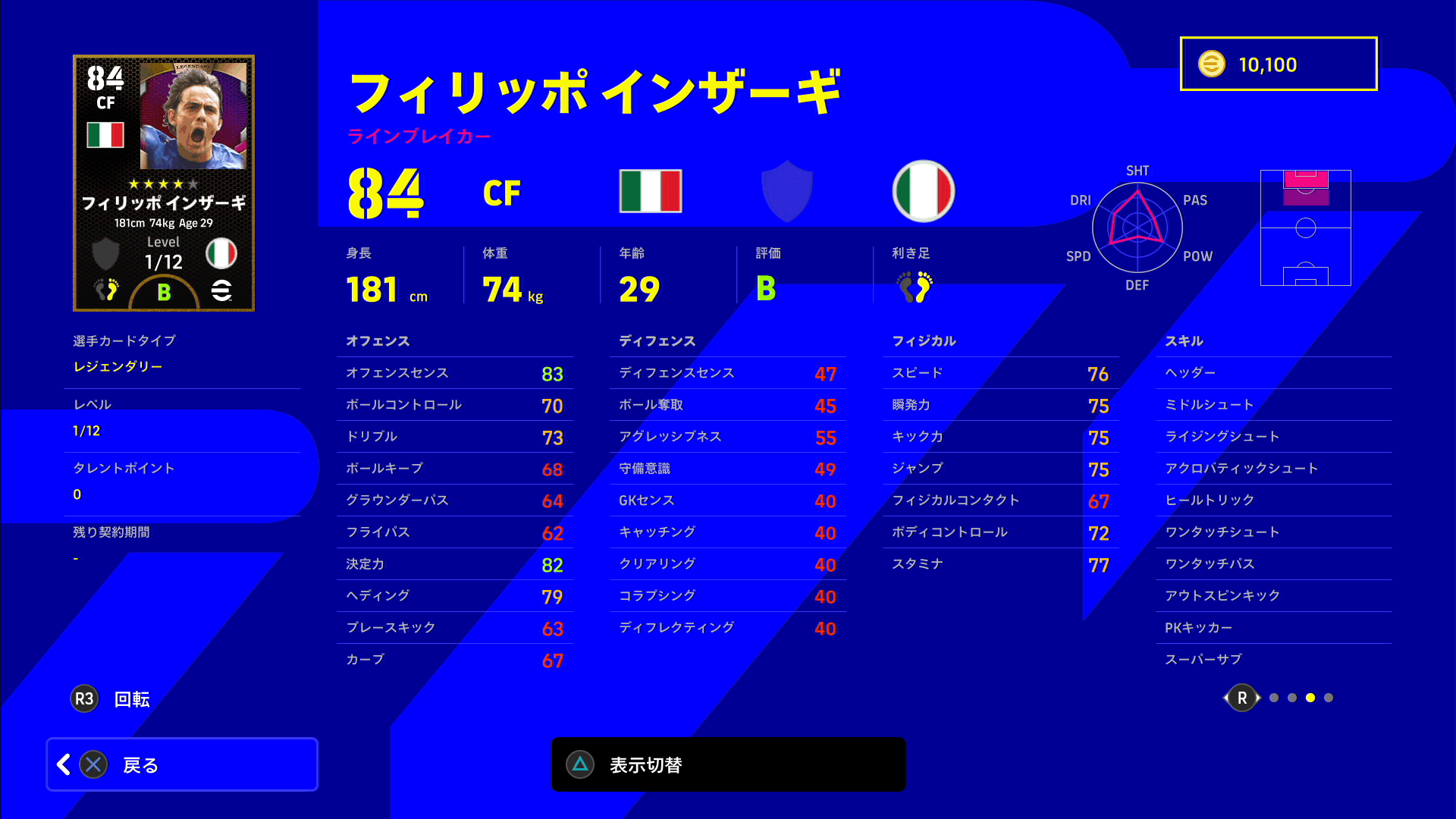 フィリッポ インザーギはCFで、プレースタイルはラインブレイカーです。