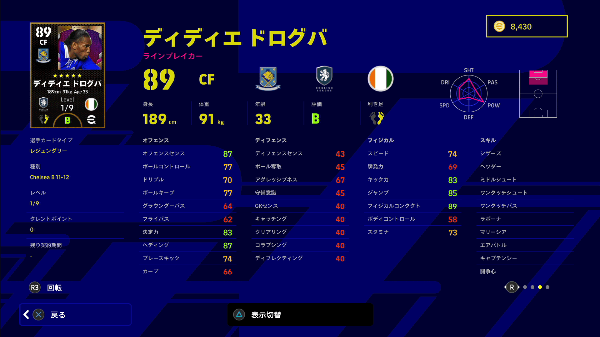 ディディエ ドログバはCFで、プレースタイルはラインブレイカーです。
