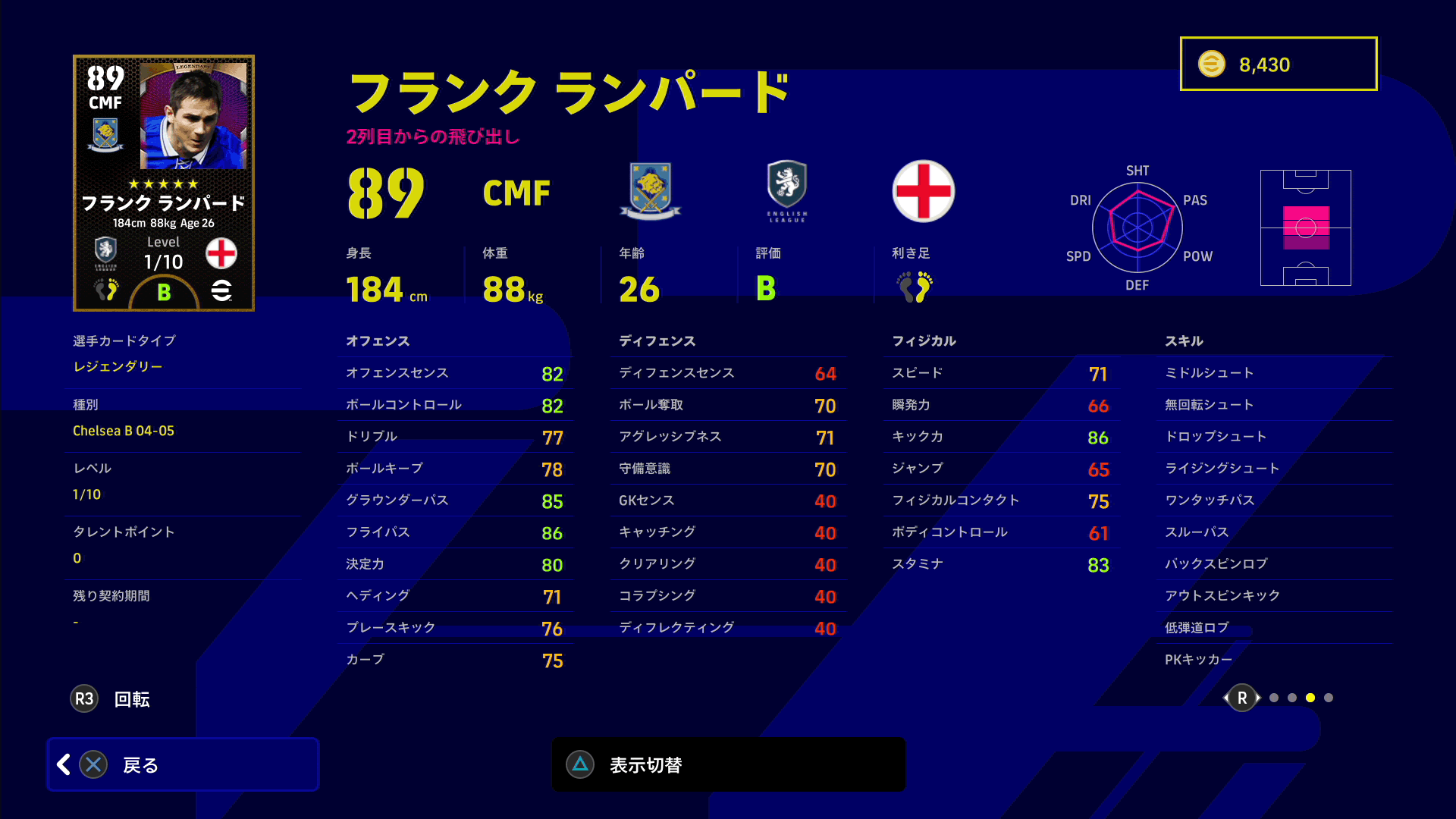 フランク ランパードはCMFで、プレースタイルは2列目からの飛び出しです。