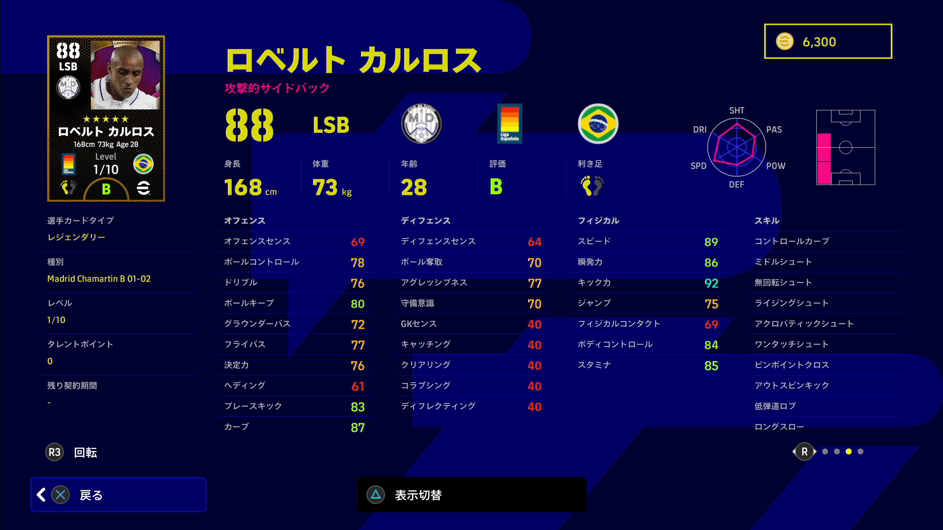ロベルト カルロスはLSBで、プレースタイルは攻撃的サイドバックです。