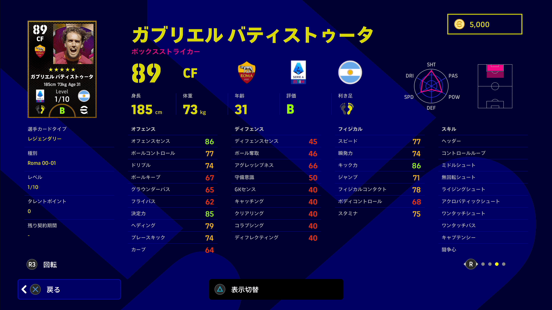 ガブリエル バティストゥータはCFで、プレースタイルはボックスストライカーです。