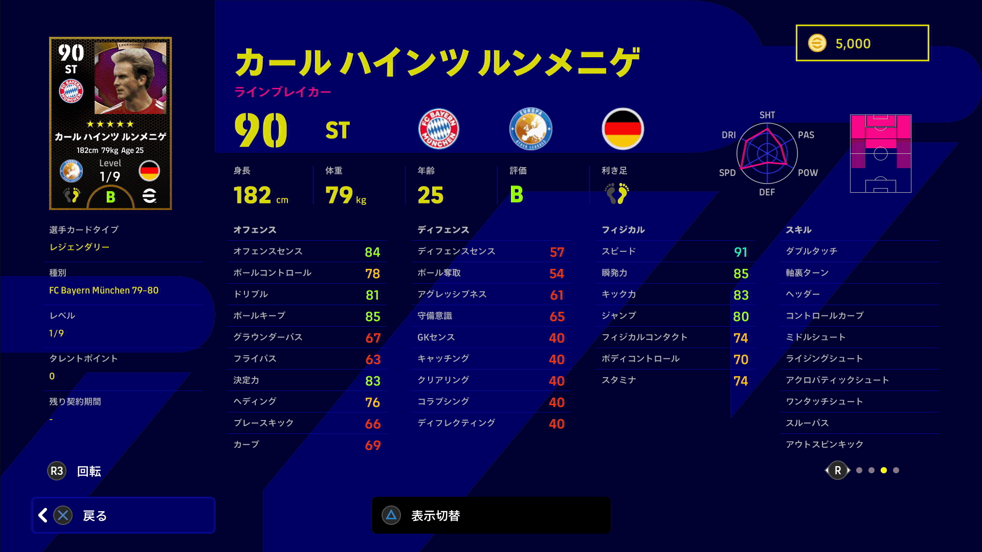 ウイイレ時代には「ルンメニゲー(ルンメニゲがいれば勝てるゲーム)」とまで言われたほど強い選手で、