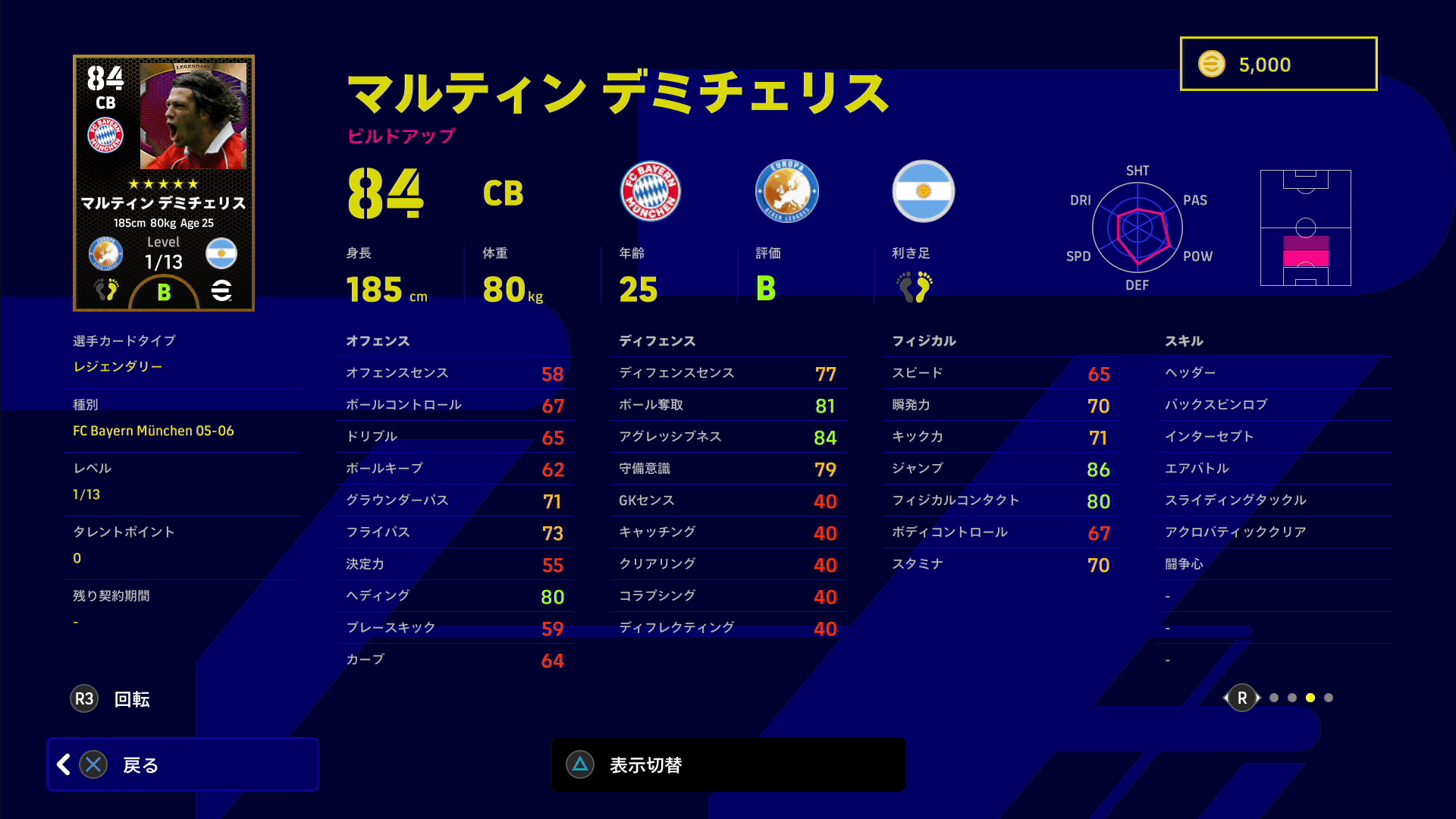 マルティン デミチェリスはCBで、プレースタイルはビルドアップです。