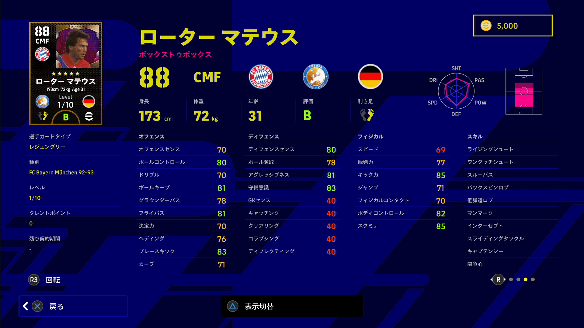 CMF/DMFのレジェンダリー選手が足りていない人や、あるいはベンチメンバーとしてオススメです。
