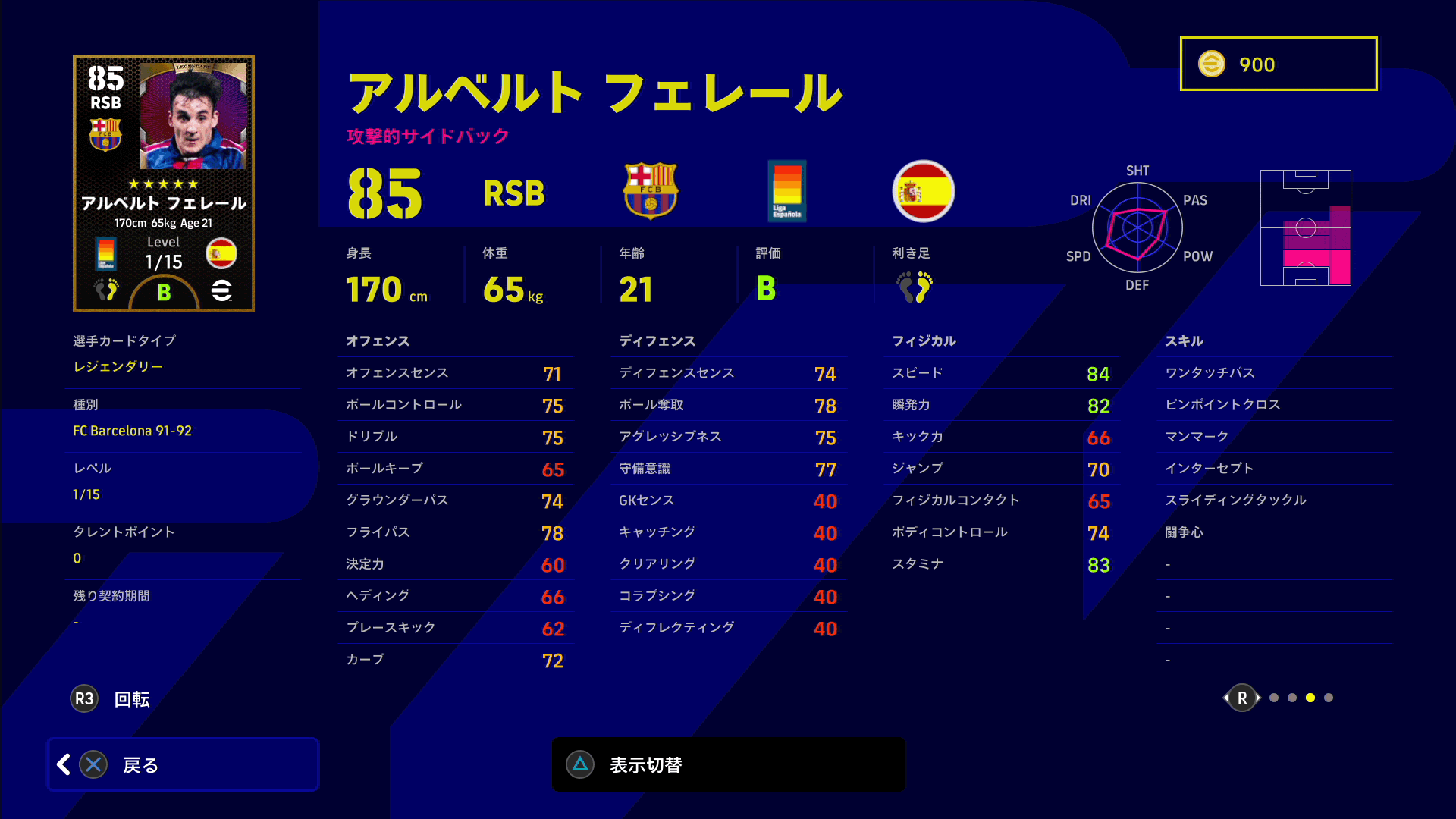 しかし、それらを補って余りあるほどボールの扱いやパスに関連した能力値が高いので、