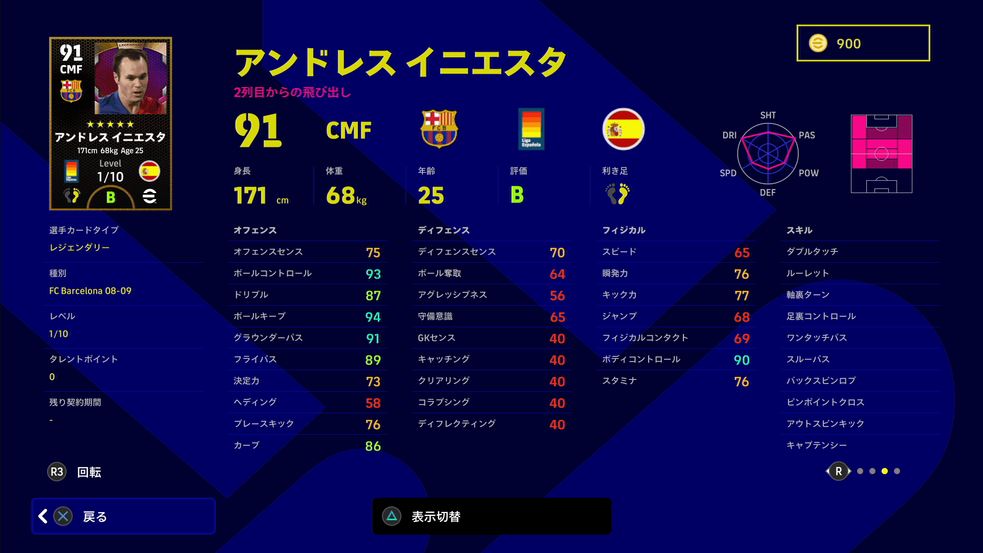 アンドレス イニエスタはOMF/CMF/RMF/LMFでプレースタイルは
