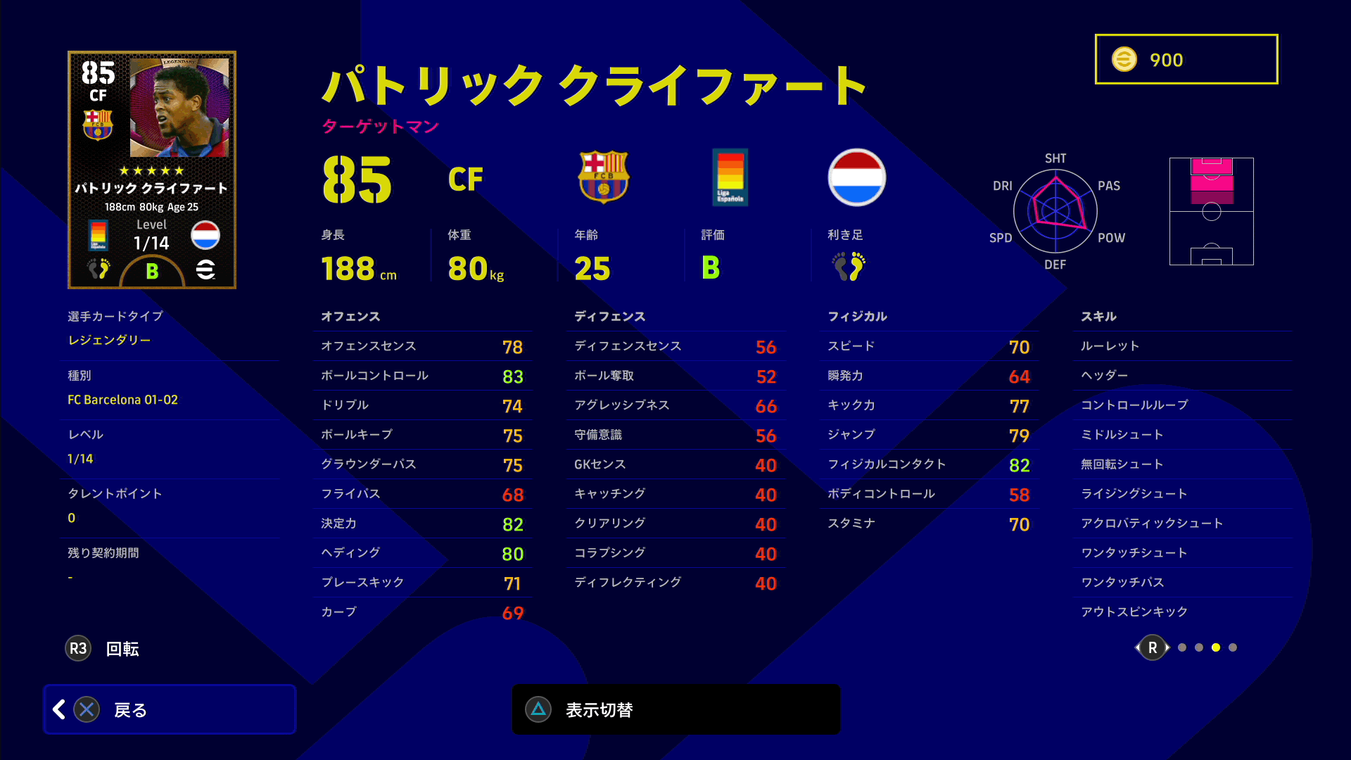 さらに、裏へ抜けるプレイスタイルであるにもかかわらず、シュート系スキルを持っていないのも気になります。