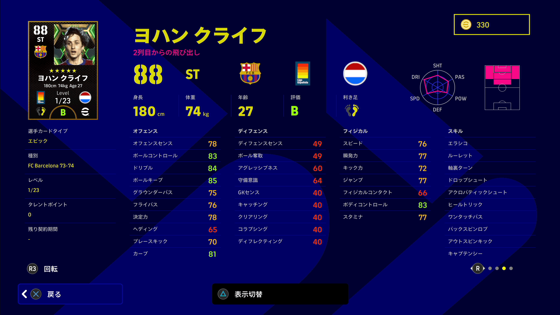 ヨハン クライフはST/OMFで、プレースタイルは