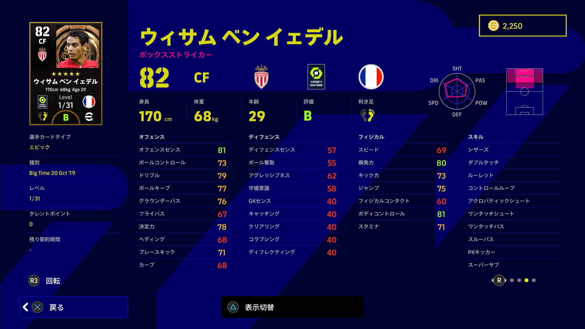 - ポジション適性はDMF(低め)が削除され、LSBが高めに変更。