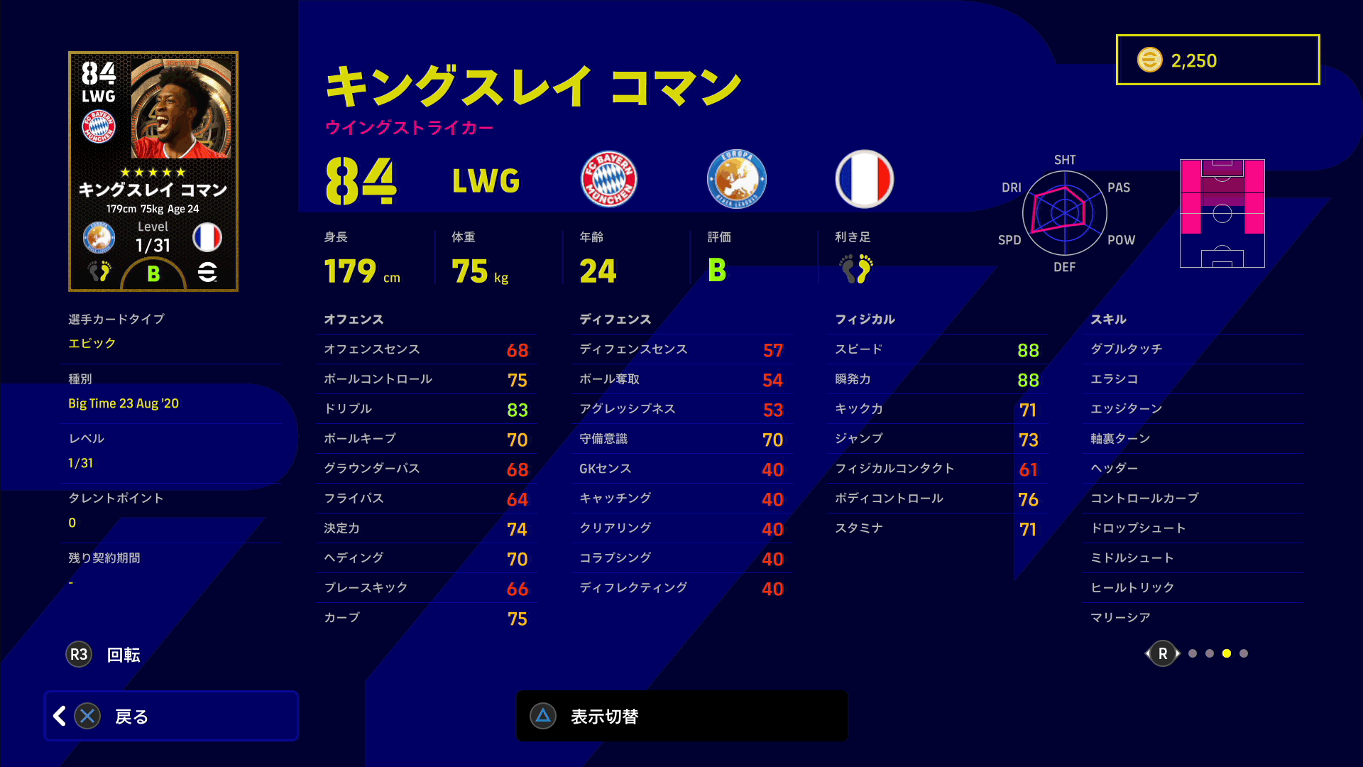 ウイングのスタメンで使いやすくなっています。