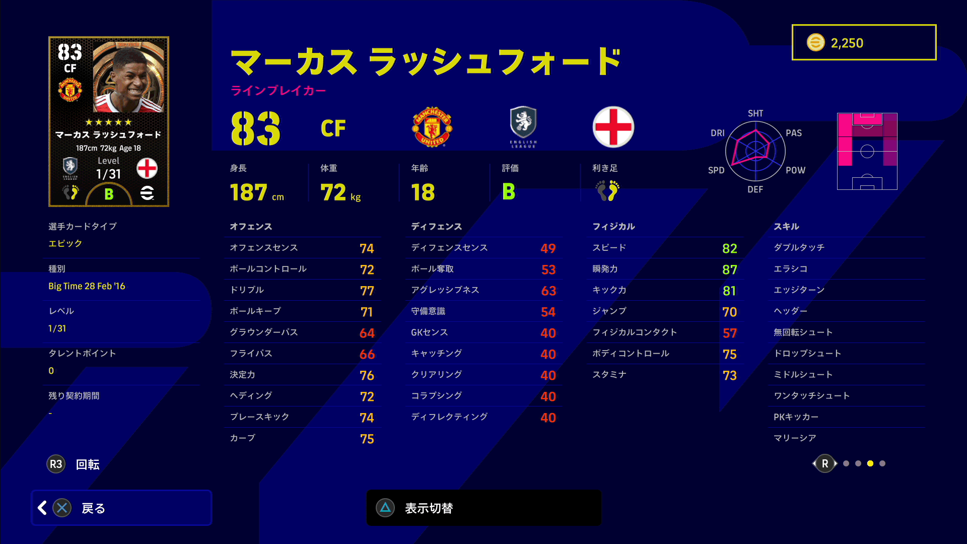 - スキルは「マンマーク」「ブロッカー」が追加。