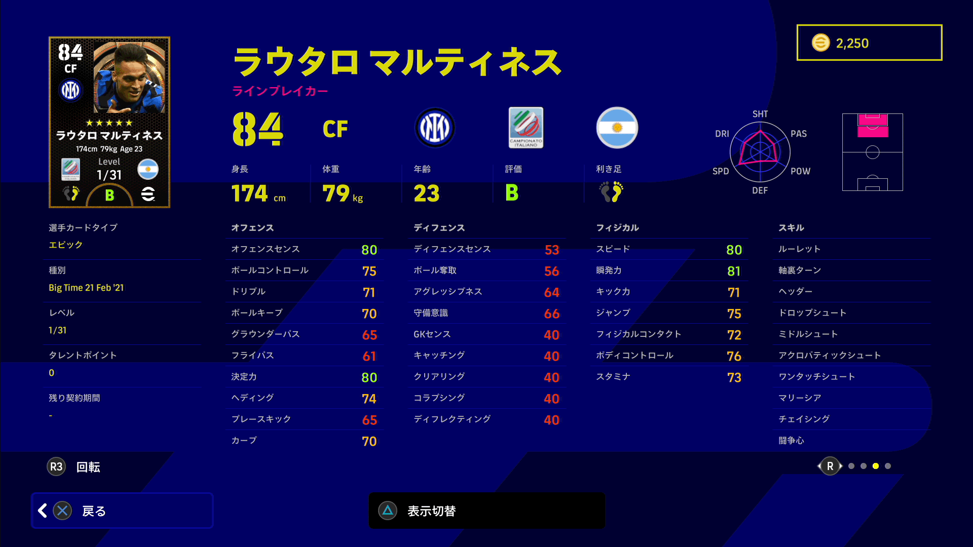 PV5として全体的に能力値が強化されており、特にパスを繋ぎやすくなっています。