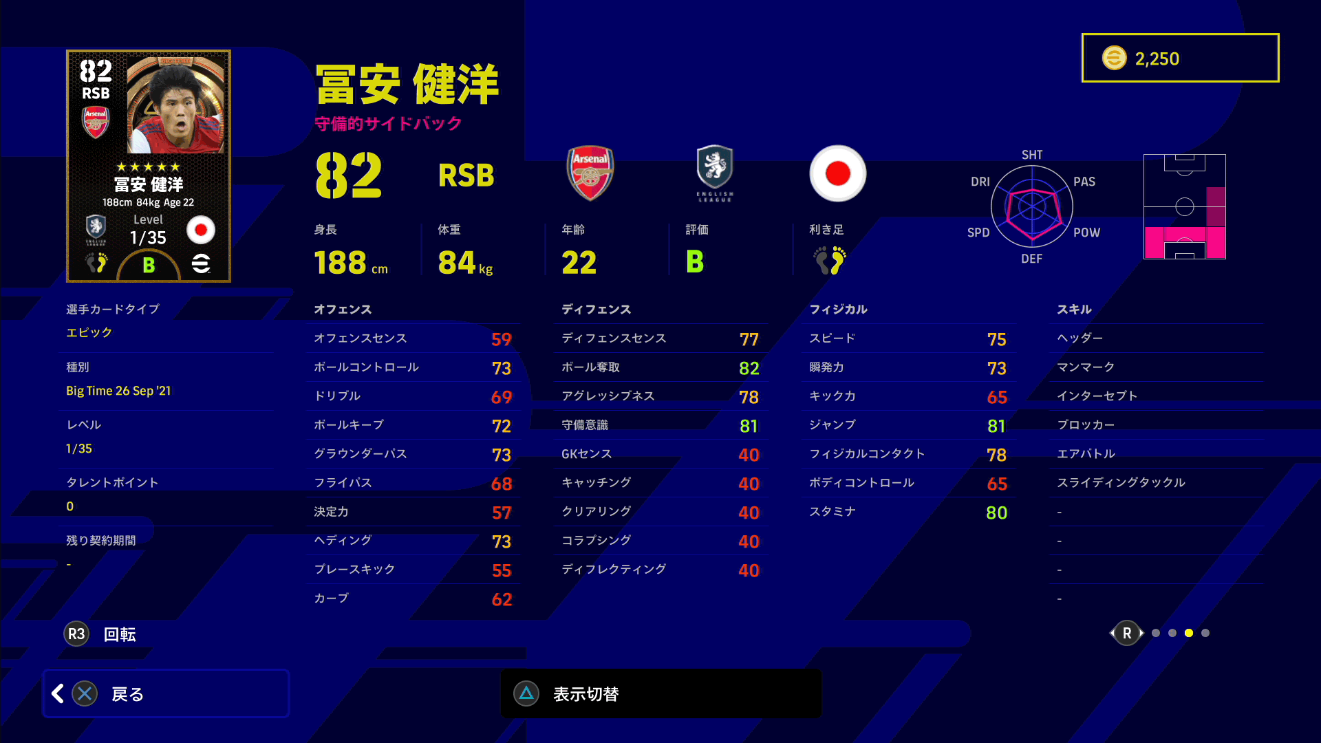 PV5として全体的に能力値が強化されており、左サイドも含めて最終ラインを任せることができます。
