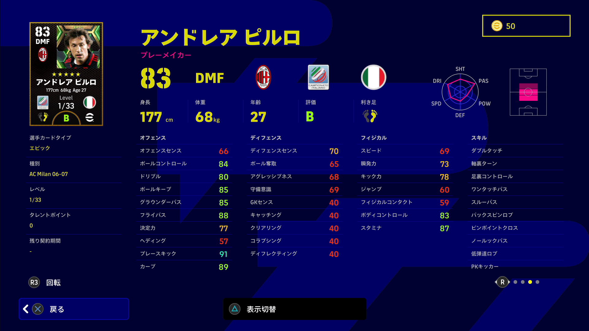 アンドレア ピルロはCMF/DMFで、プレースタイルは