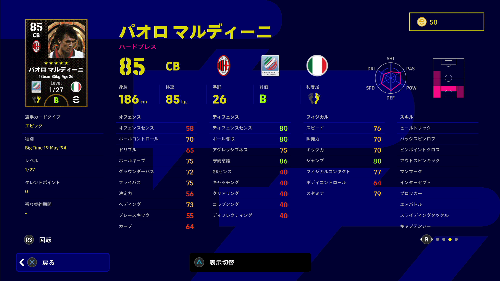 パオロ マルディーニはCB/LSBで、プレースタイルは