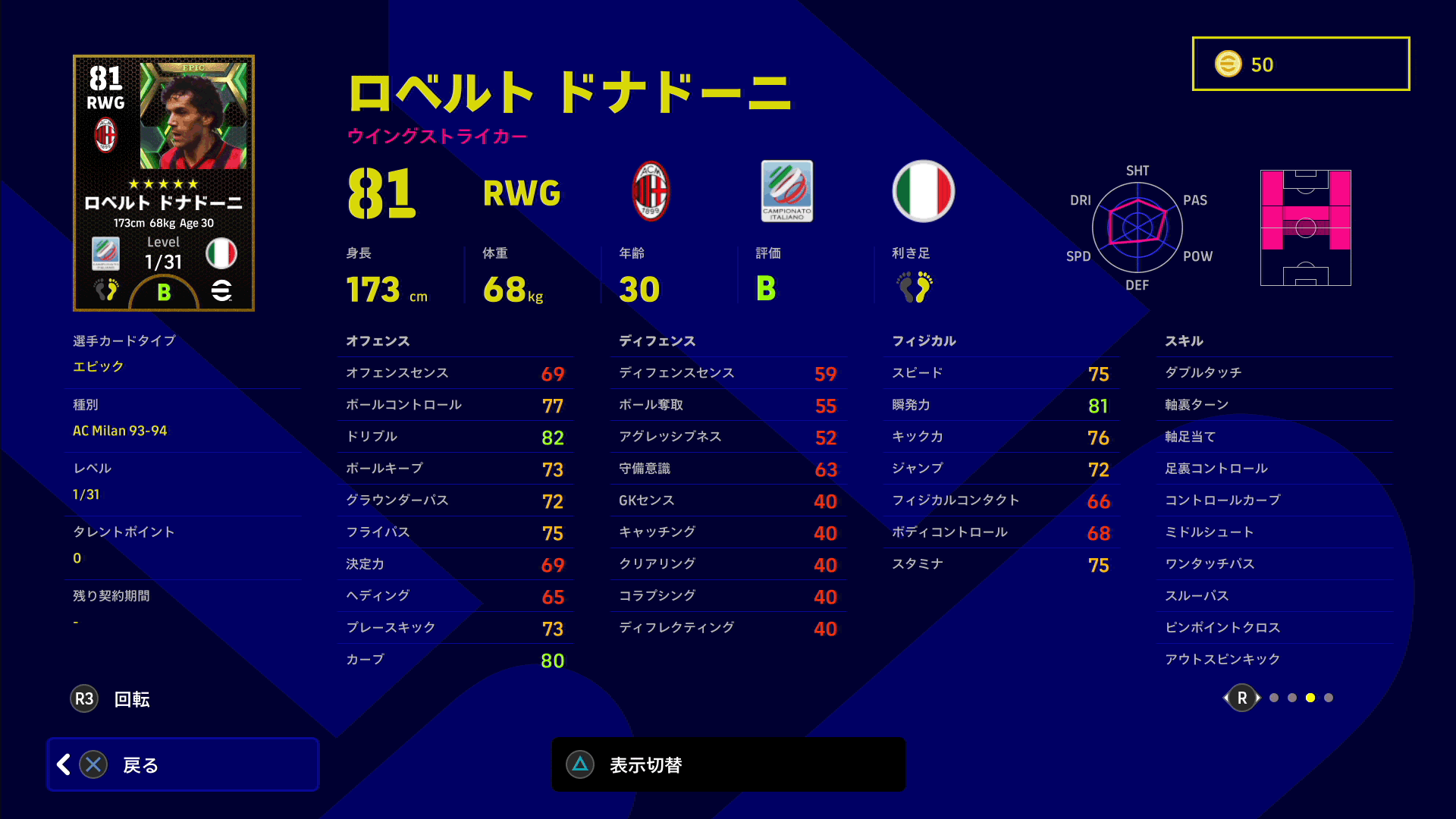 ロベルト ドナドーニはRWG/LWG/RMF/LMF/OMFで、プレースタイルは